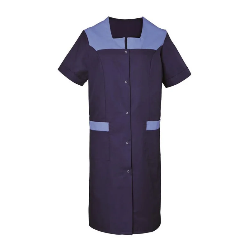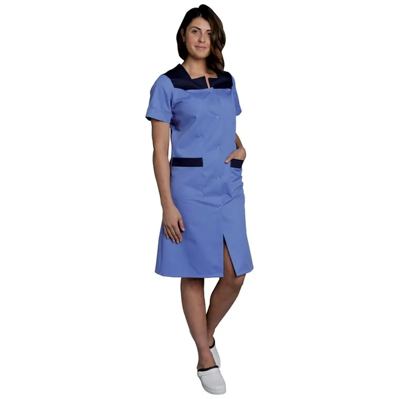 Blouse de travail longue SNV disposant d’une fermeture à boutons-pression et de manches courtes. Une blouse pro féminine et confortable pouvant convenir à différentes professionnelles : aide à domicile, personnel d’entretien ménager, agent de cantine. Elle dispose d’une martingale au dos et d’une encolure carrée. 3 coloris au choix.
